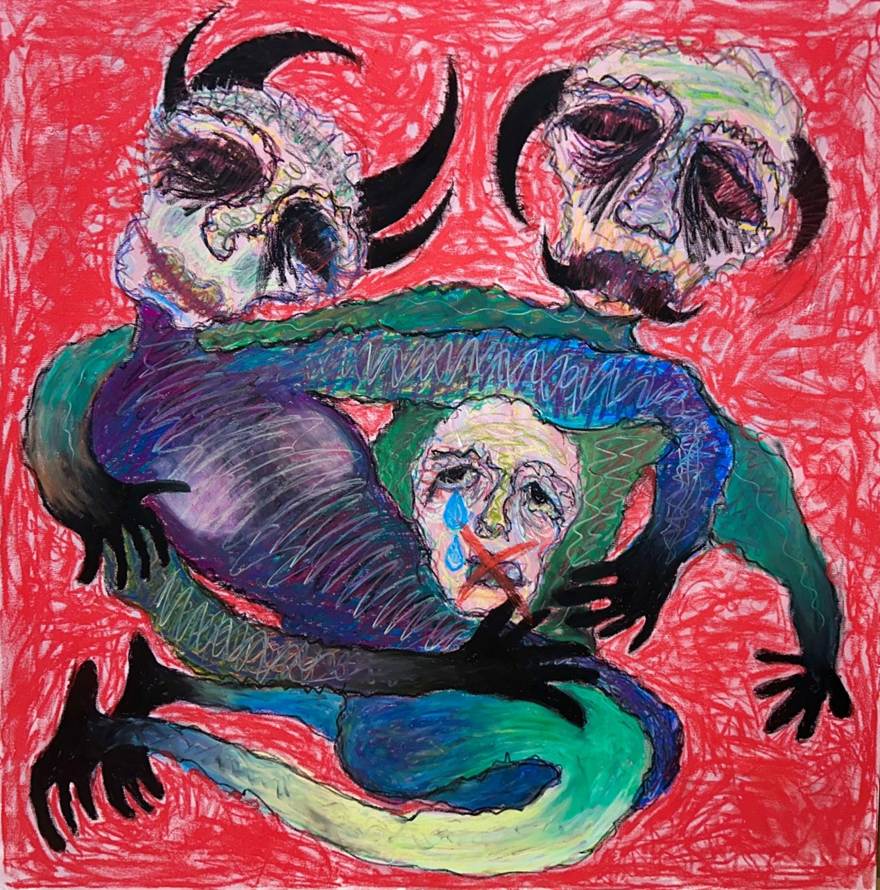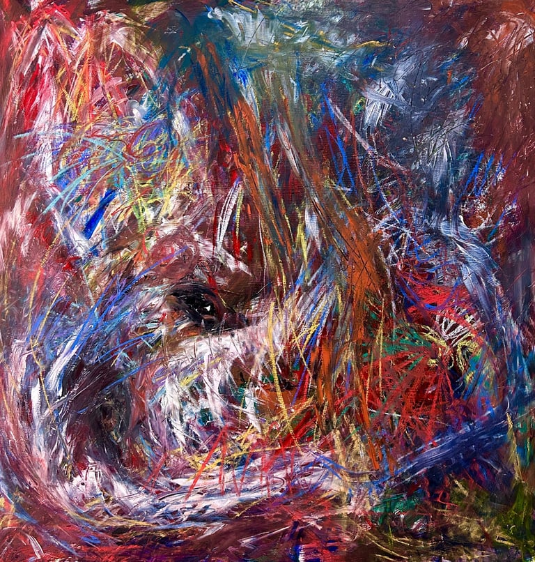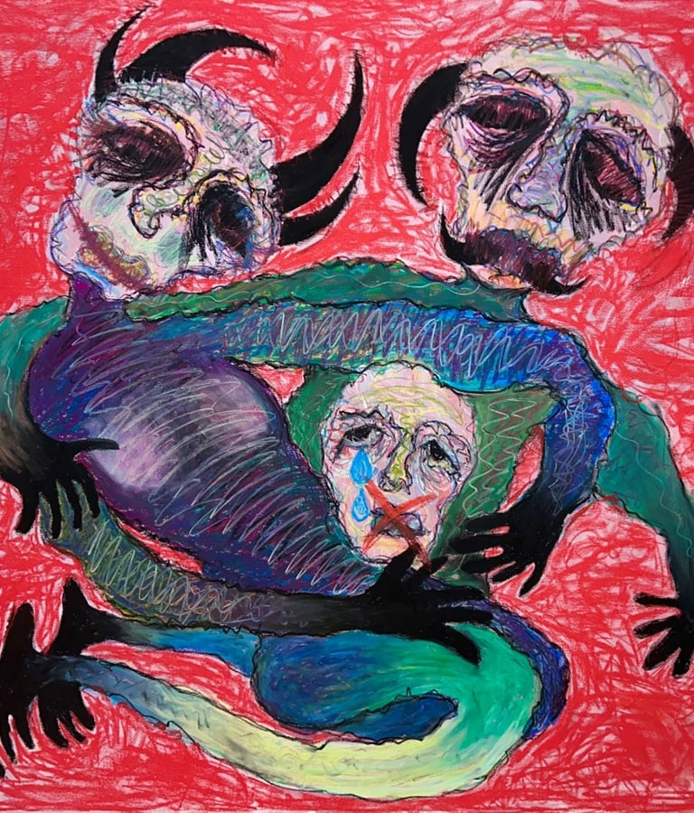 ZheHan Nan, known as Fidel Nan, was born in China in 2001 and graduated from Shandong University of Arts in 2023 with a degree in Public Art. He is currently pursuing a master’s in Artistic Research and Creation at Complutense University of Madrid, Spain. Blending abstraction, symbolism, and raw expression, his work distorts the human form, weaving bold colors into visceral narratives. Layers of acrylics, oil pastels, and pigments create textured landscapes of tension and intimacy. Seeking to merge painting, tattoo art, and other media, he envisions immersive worlds that stir the soul and echo the unspoken.