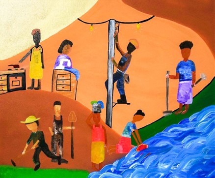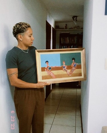 Gab Dias, artista visual de Palmas, TO, vive no Rio de Janeiro, onde faz Mestrado em Arte e Cultura Contemporânea (UERJ). Formada em Artes Visuais (UnB) e Design Gráfico (IESB), participou de projetos como MUTHA (2021), IlustraDELAS (SP, 2022) e do VI Salão Palmense (TO, 2022). Em 2024, realizou residência artística com mentoria de Eustáquio Neves em Diamantina, MG. Sua arte explora ancestralidade, cultura afro-brasileira, religiões africanas e as ruas do Brasil.