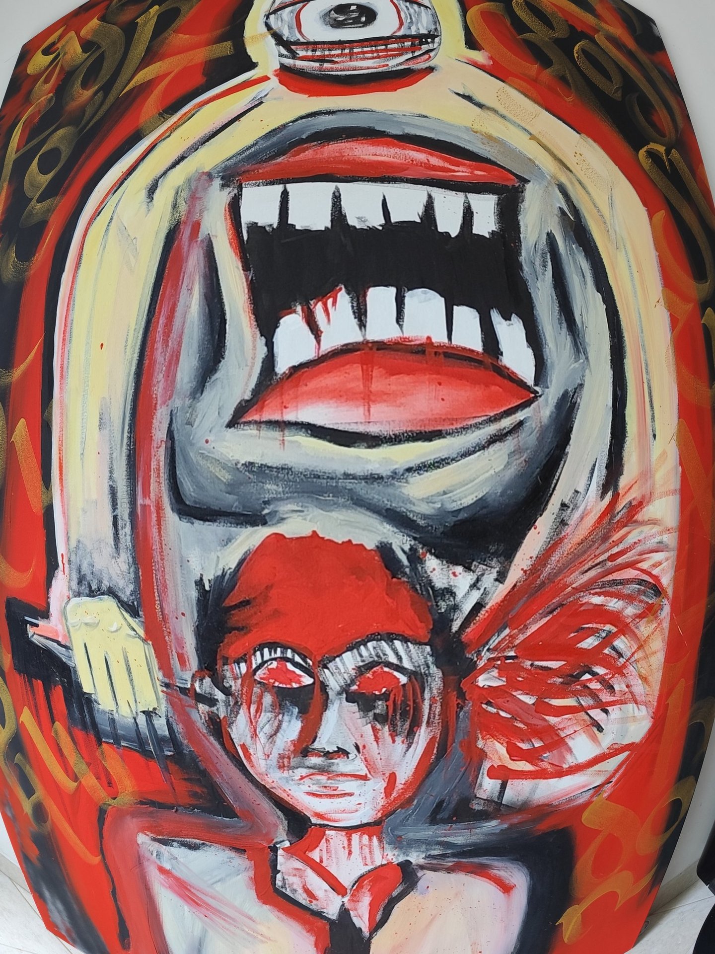 Ricardo Martinez explora o desenho desde a infância, criando personagens influenciados pelo universo do terror e da ação. Fascinado pelo impacto das expressões visuais, seu trabalho é marcado pela experimentação de técnicas e materiais, desenvolvendo pincéis e instrumentos para novas texturas. Além de assinar capas de álbuns para mais de cinco bandas, sua série Olhos Negros reflete sua busca por intensidade estética e pelo lado obscuro da arte, revelando camadas de mistério e emoção.