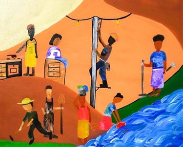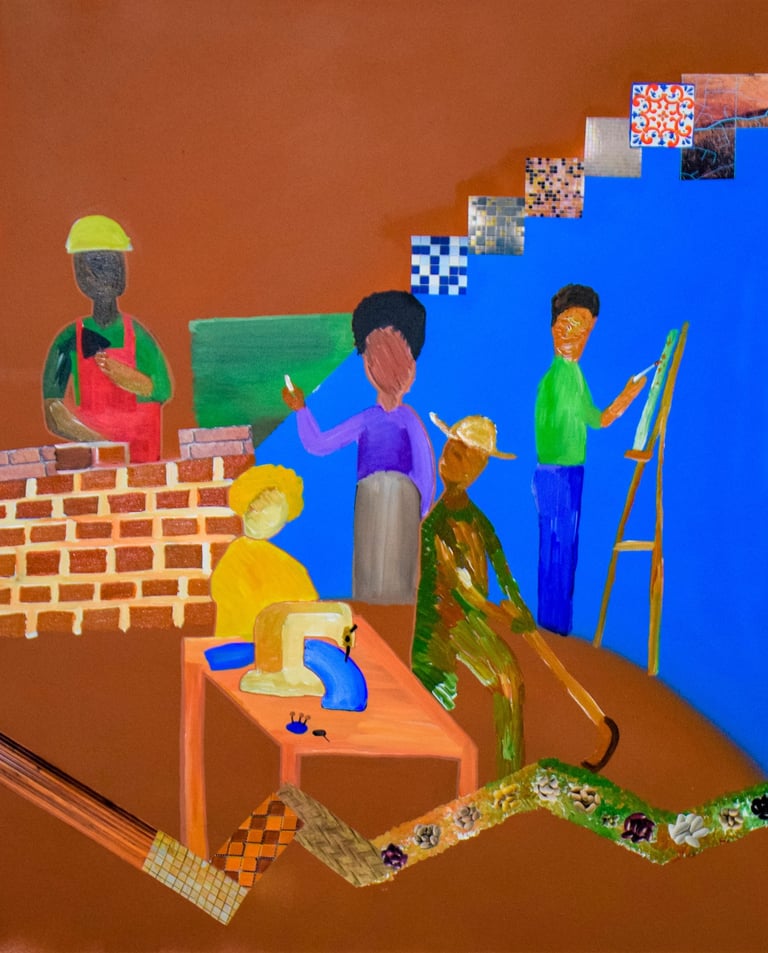 Gab Dias, artista visual de Palmas, TO, vive no Rio de Janeiro, onde faz Mestrado em Arte e Cultura Contemporânea (UERJ). Formada em Artes Visuais (UnB) e Design Gráfico (IESB), participou de projetos como MUTHA (2021), IlustraDELAS (SP, 2022) e do VI Salão Palmense (TO, 2022). Em 2024, realizou residência artística com mentoria de Eustáquio Neves em Diamantina, MG. Sua arte explora ancestralidade, cultura afro-brasileira, religiões africanas e as ruas do Brasil.